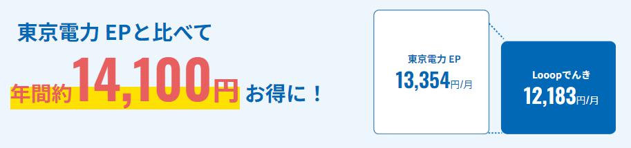 | 世帯人数 | 東京電力EP | Looopでんき | 差額 |