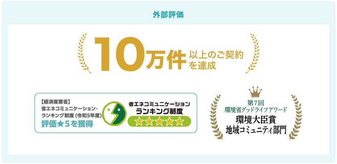 使いやすさが評価されて契約数10万件を突破。経産省から評価★5を獲得・環境大臣賞を受賞!「新電力って怪しい」というイメージを持つ人でもきっと安心して利用できるはず。