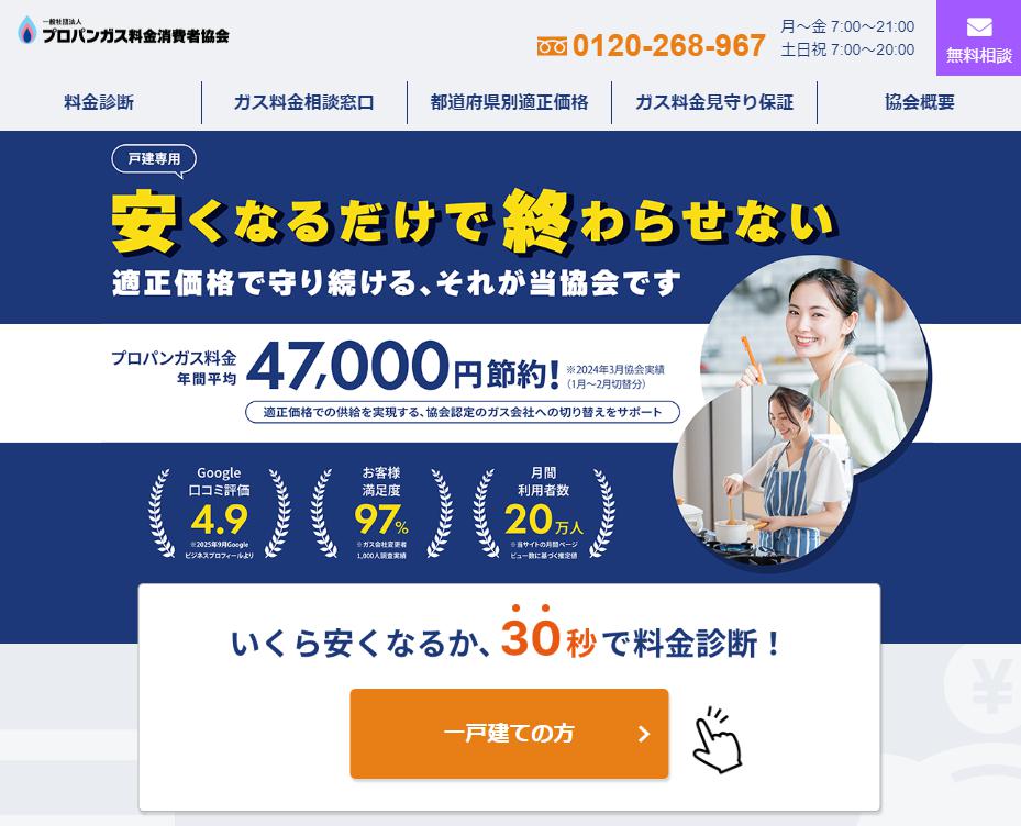 まずは無料の『プロパンガス料金消費者協会』で、料金がどれくらい安くなるか一度相談してみましょう!