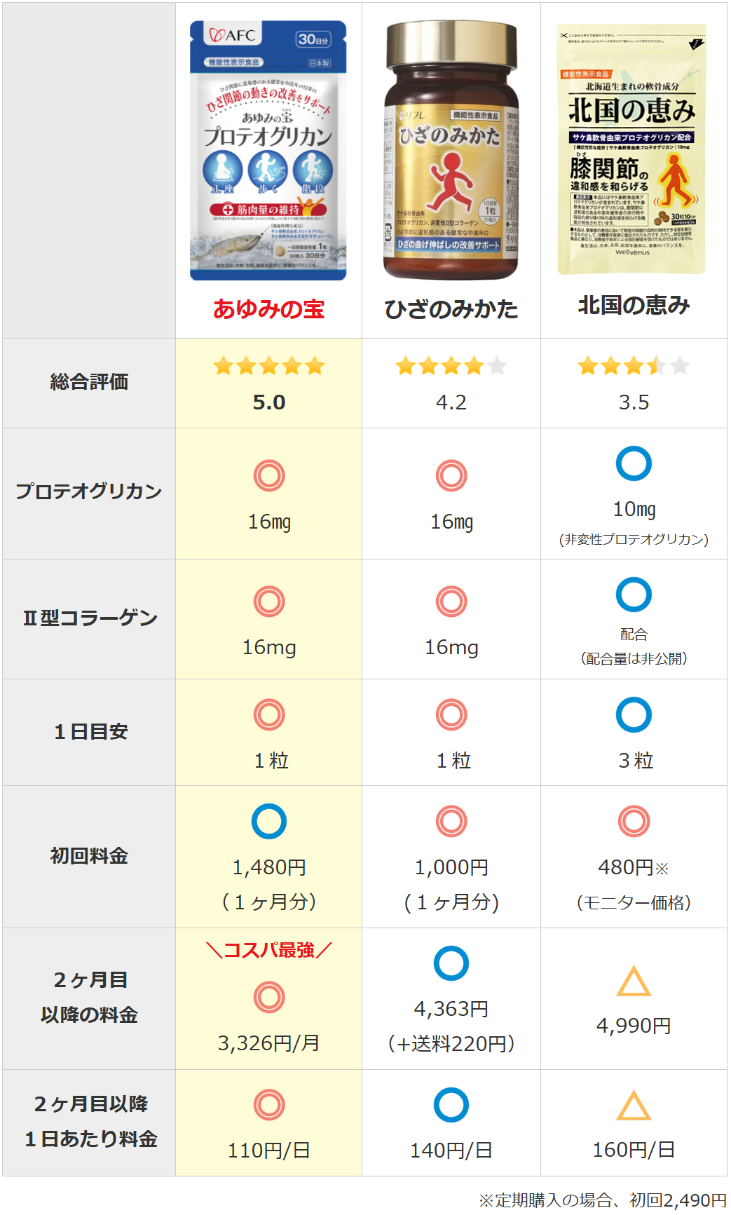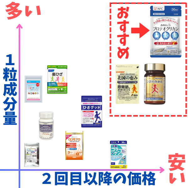 プロテオグリカンで有名な所と比較しても、配合量多く・価格の安いので圧倒的に続けやすい!