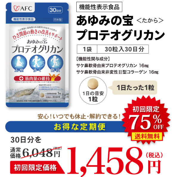 膝に違和感を感じているとき飲んで欲しいのは、「あゆみの宝」というサプリ。