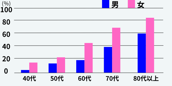 年齢だけ見ても60代女性の約40%以上が発症し、70代だと60%以上…