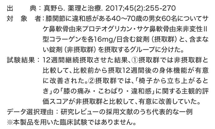 | 相乗効果 | プロテオグリカンがU型コラーゲンの合成を促進するため、一緒にとることで、膝軟骨の健康をより効果的にサポート |